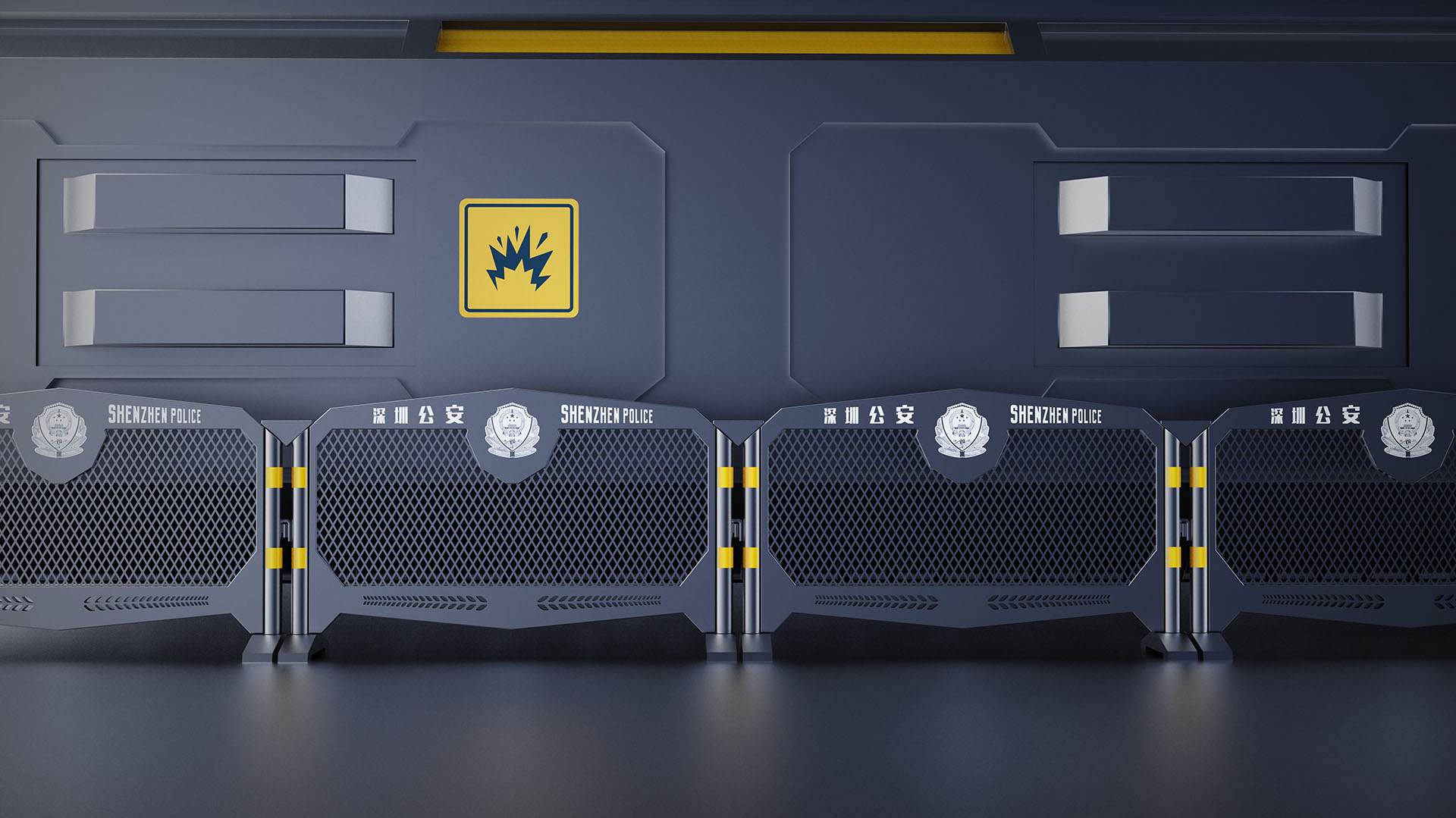 加利弗完成深圳城市警用铁马设计后,绝大多数重要大型政府会议或者高规格展会都是使用这款铁马作为防护墙,展示深圳公安的新形象。