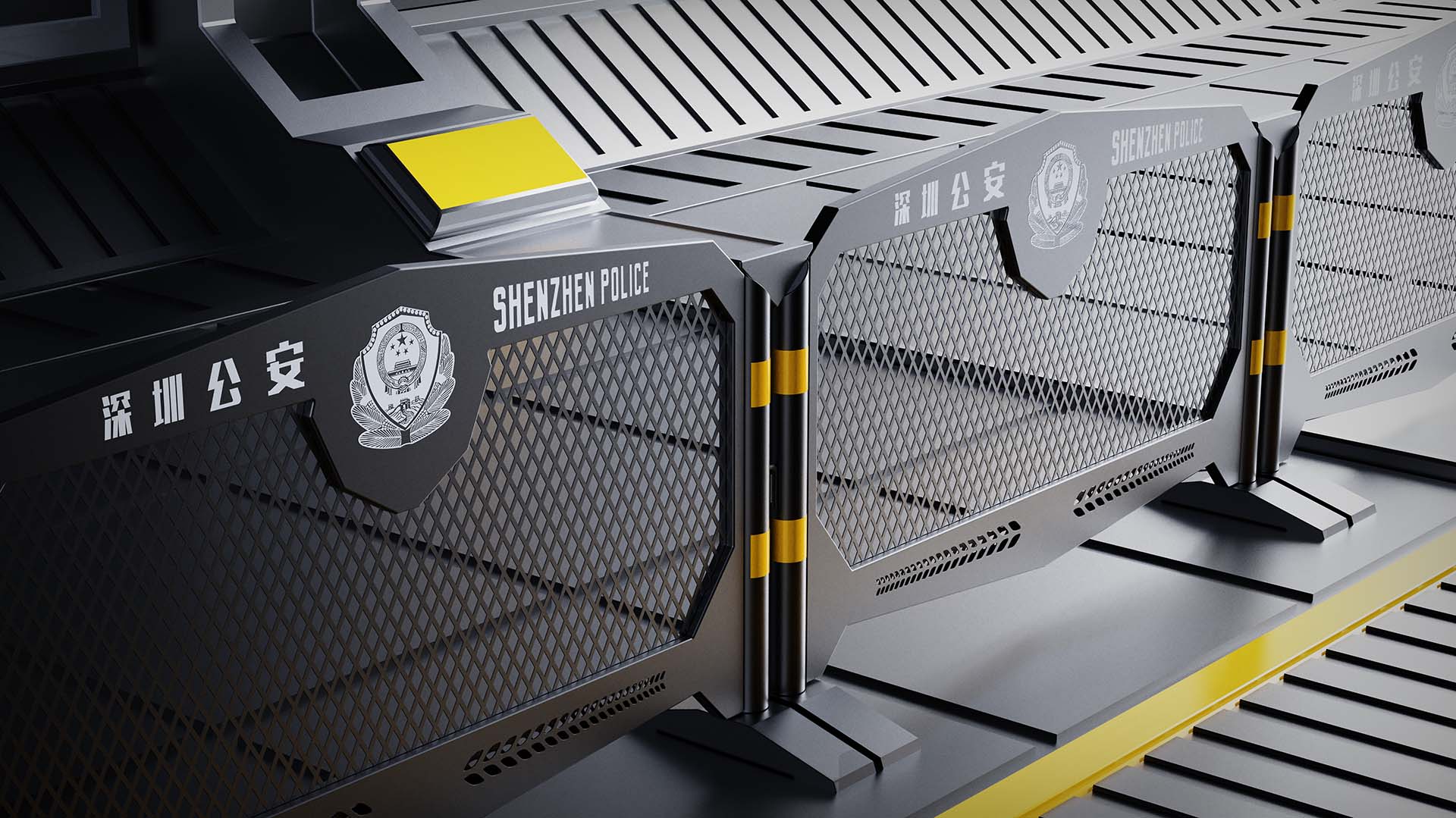 设计师从“法网恢恢疏而不漏”的经典警句得到灵感,把“法网”的概念融入深圳城市防暴铁马的设计中,成就了这款震慑力极强、结构实用、安装方便的新型警用铁马。