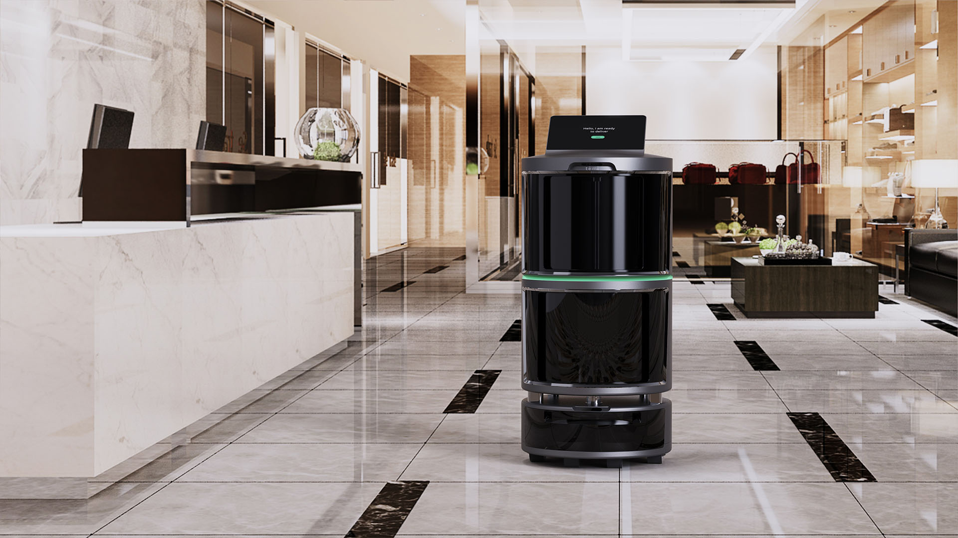 考虑到应用场景中有不同的地板材质,如地毯、鹅卵石地面等,加利弗设计团队在调研大多数酒店的不同材质之后,将机器人的轮子高度定在40mm,以确保temi Go在大多数酒店中行走自如。