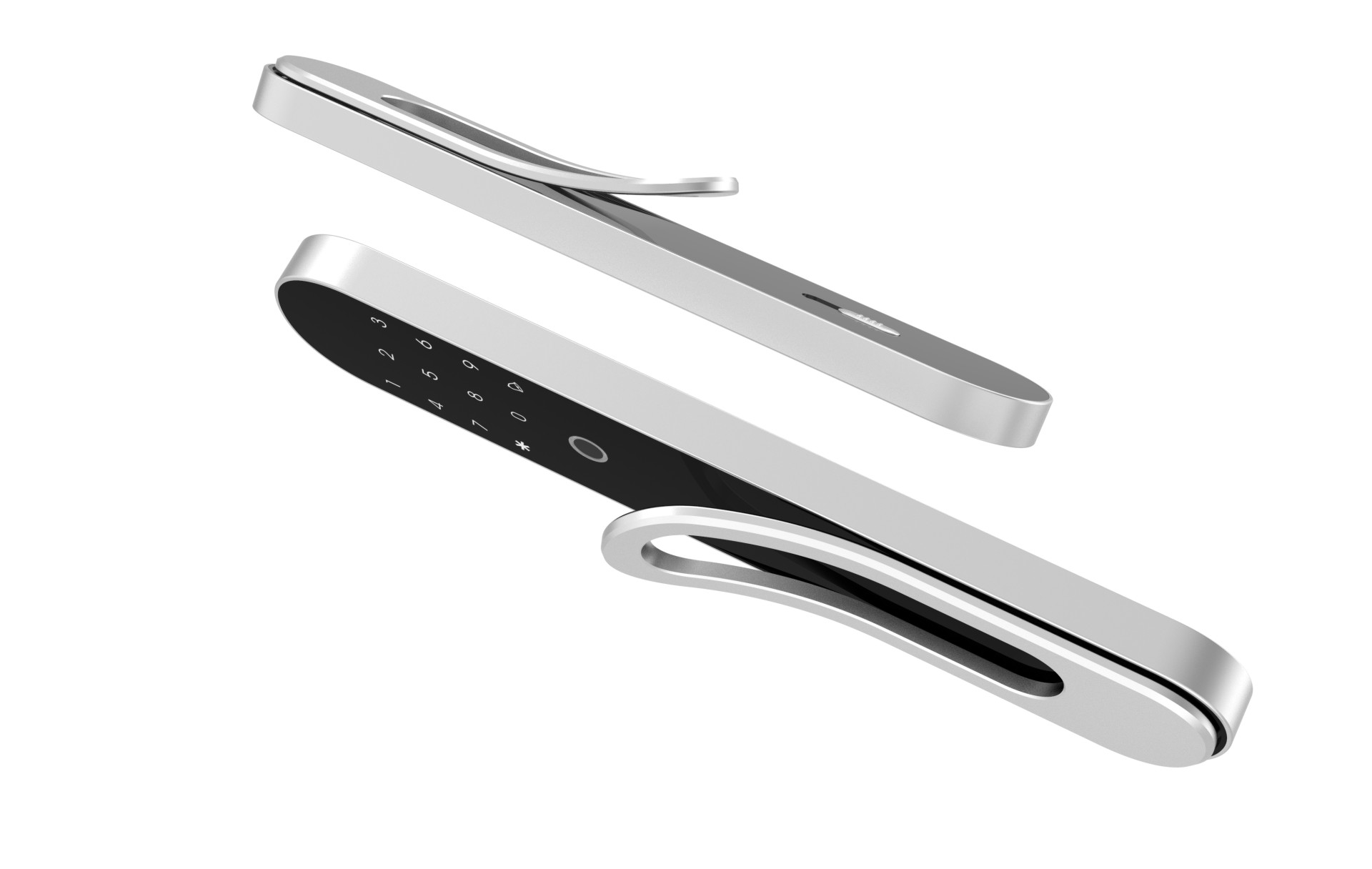CLF加利弗产品设计团队设计这款全新智能门锁的时候,打破市场上千篇一律的造型,以独特的别针为产品设计灵感,将圆的元素贯穿整个产品设计。简约而不简单设计,花开两瓣的把手造型设计,显得非常独特、大气,形成一个超级记忆符号,也是一个超级利益点,让看过的人,对比之后,再也无法忘记这款产品的存在,促进了产品的销售。