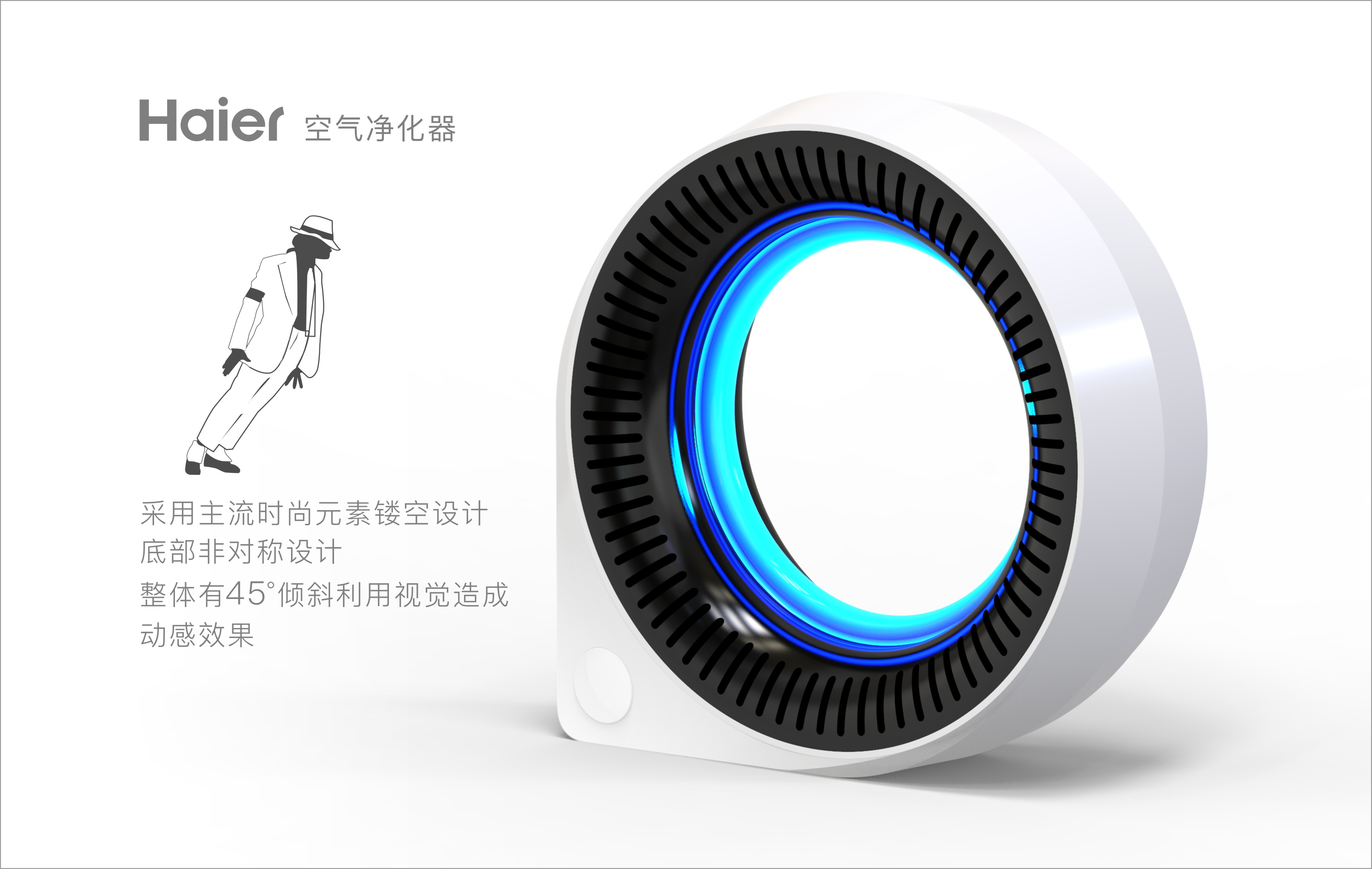 加利弗产品设计团队设计智能空气净化器。打破传统净化器的造型,目的是为海尔集团增加一款突破产品,增加销量。