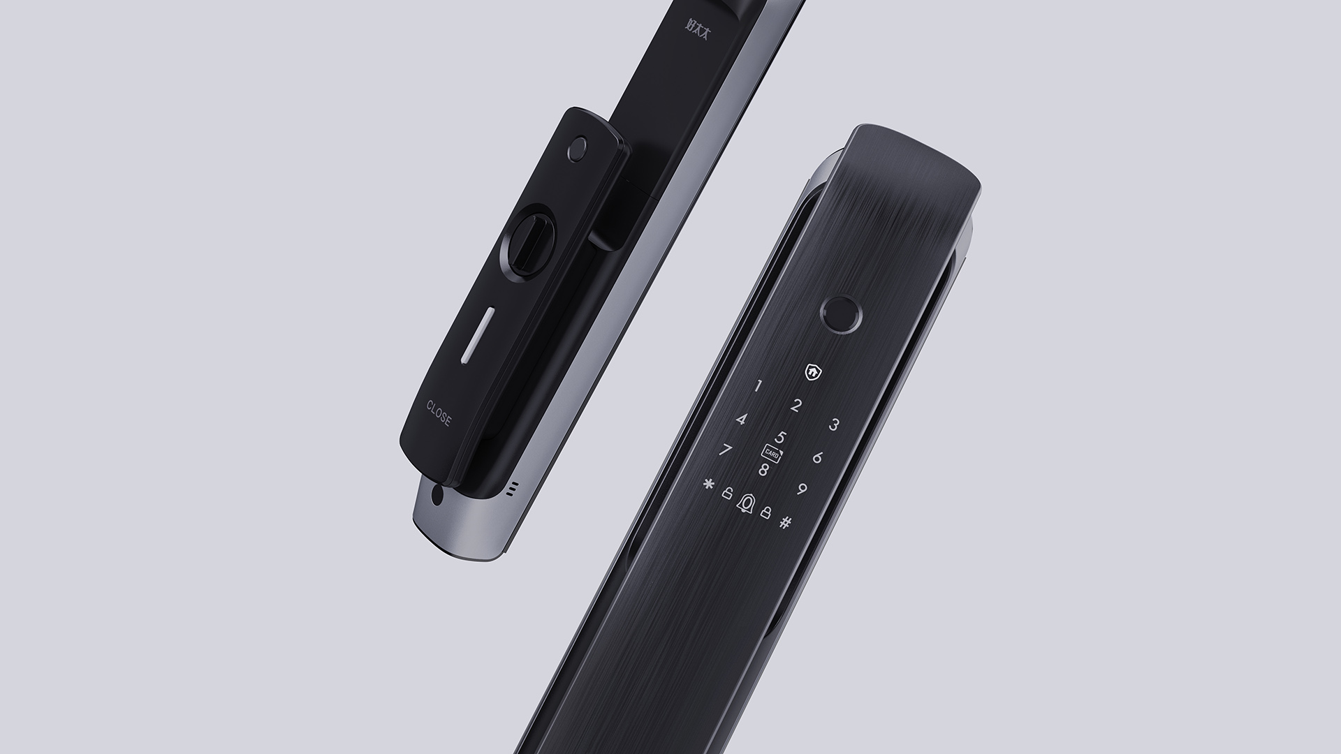 CLF加利弗策划设计的智能门锁,在外观上采用一体悬空超大把手设计,解决了常规门锁小把手手握感不佳的问题,面板整体拉丝设计,侧面上下两端弯曲,使门锁看起来更显轻薄,高端.