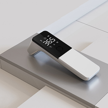额温枪设计简约撞色,全面屏视觉,背后弧度人机设计,贴合人手握持手感,更加舒服。