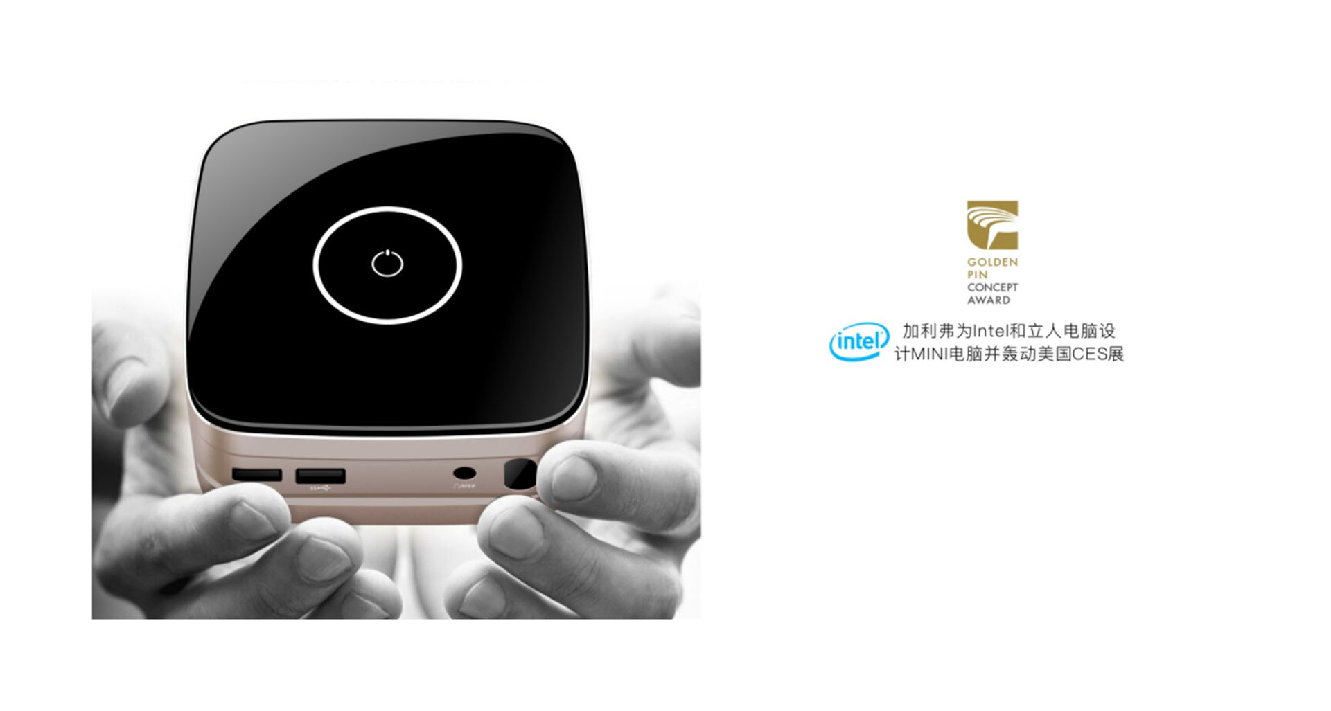 加利弗为500强企业英特尔设计MINI电脑。英特尔立人电脑委托深圳加利弗设计一款自我颠覆的电脑主机,需要颠覆了台式电脑主机的传统形态,体积及重量只有原来的1/20。加利弗设计MINI电脑设计,灵动来自琥珀,晶莹剔透,颜值高,中间隐隐的呼吸灯,犹如一个有爱的小宠物在一旁陪伴用户。这款产品发布后,成为电脑主机升级的典范,并于2017年获得金点设计奖。