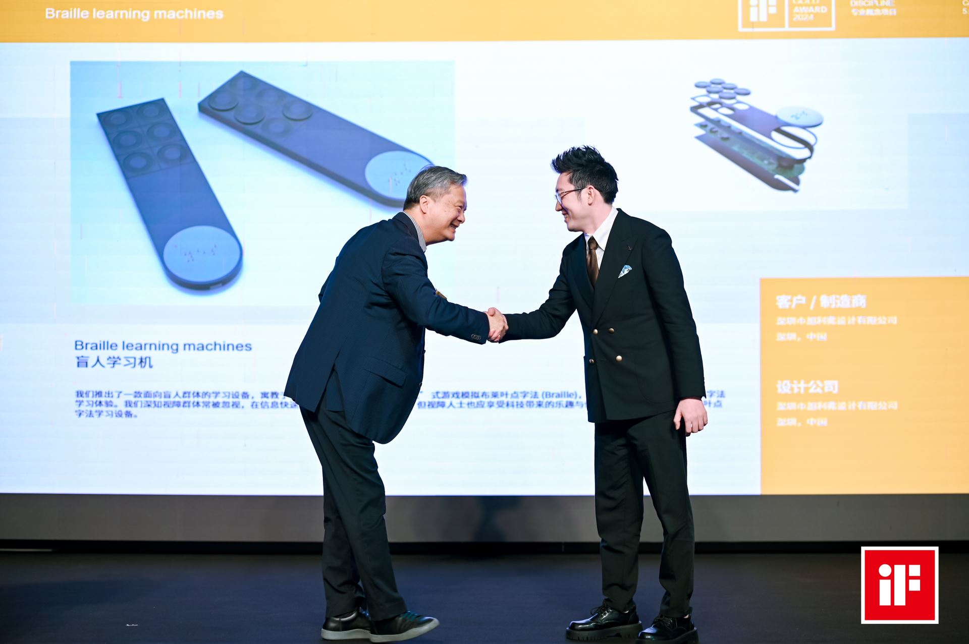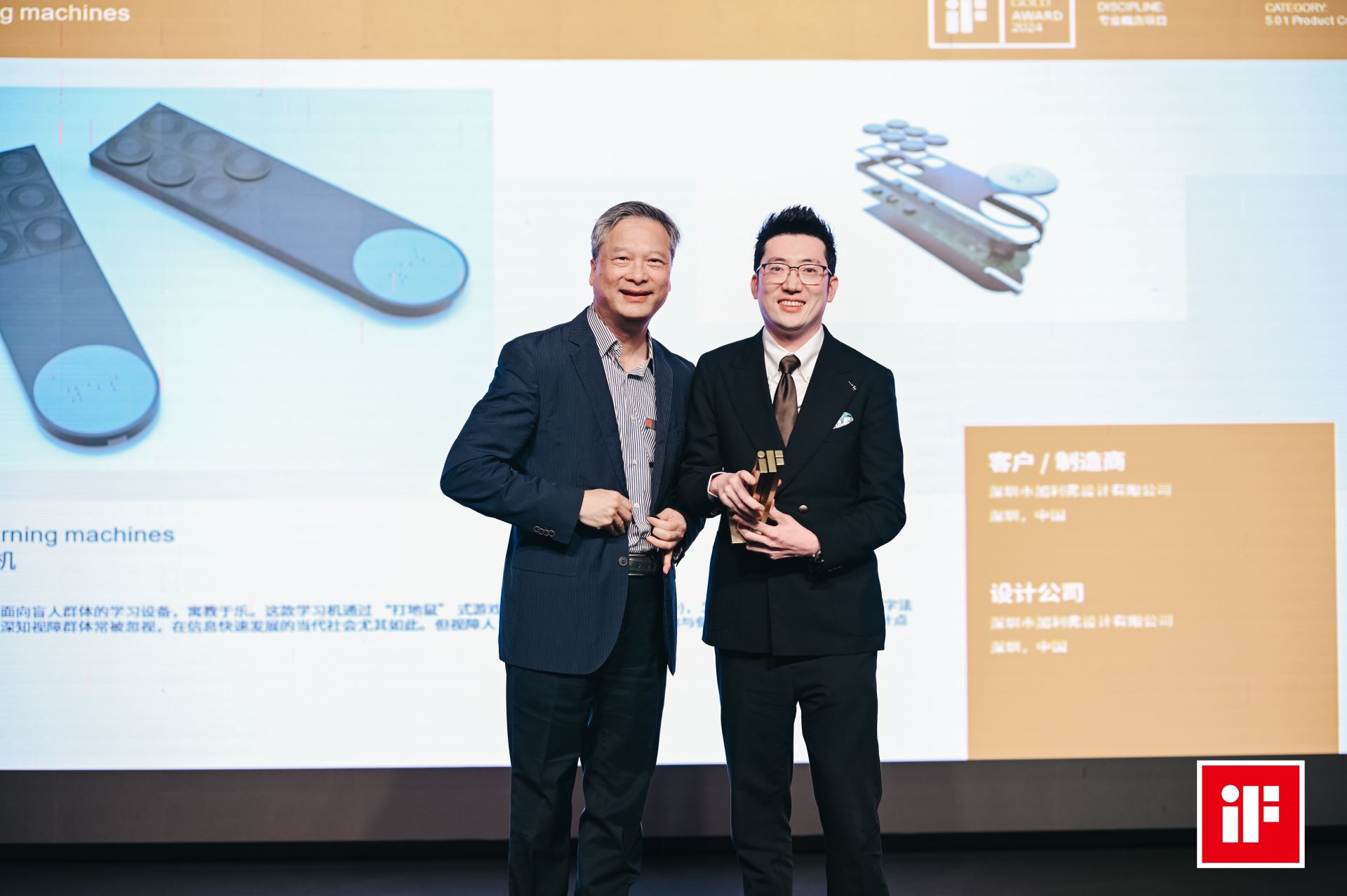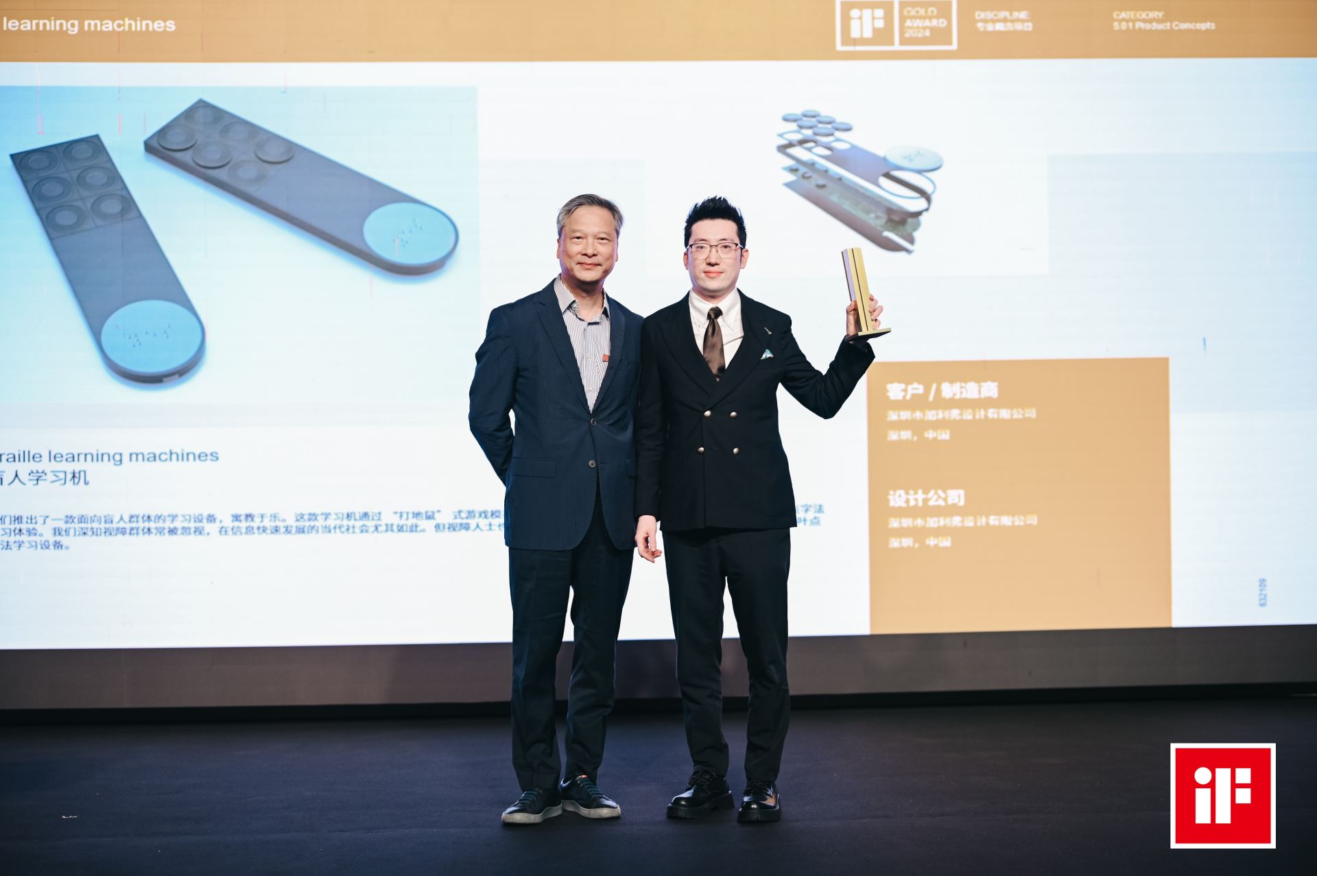 刘亮特别提到今年荣获德国iF设计金奖的盲文学习机的设计初衷, “带着团队发现需要做更多的关爱产品,特别是视障群体在生活中面临着许多不便,从被占用的盲道到缺乏语音提示的红绿灯,再到市场上缺乏适合他们的电子娱乐设备。这些痛点激发了我们为这个群体设计一款盲文学习机的想法。”这款产品以其独特的设计理念和深刻的人文关怀,解决了视障人士学习盲文的难题,不仅极大地提高了学习效率,更让学习过程充满乐趣。本次获得2024德国iF设计奖金奖,不仅是对加利弗设计实力的认可,更是中国设计在国际舞台上的一次重要展示。