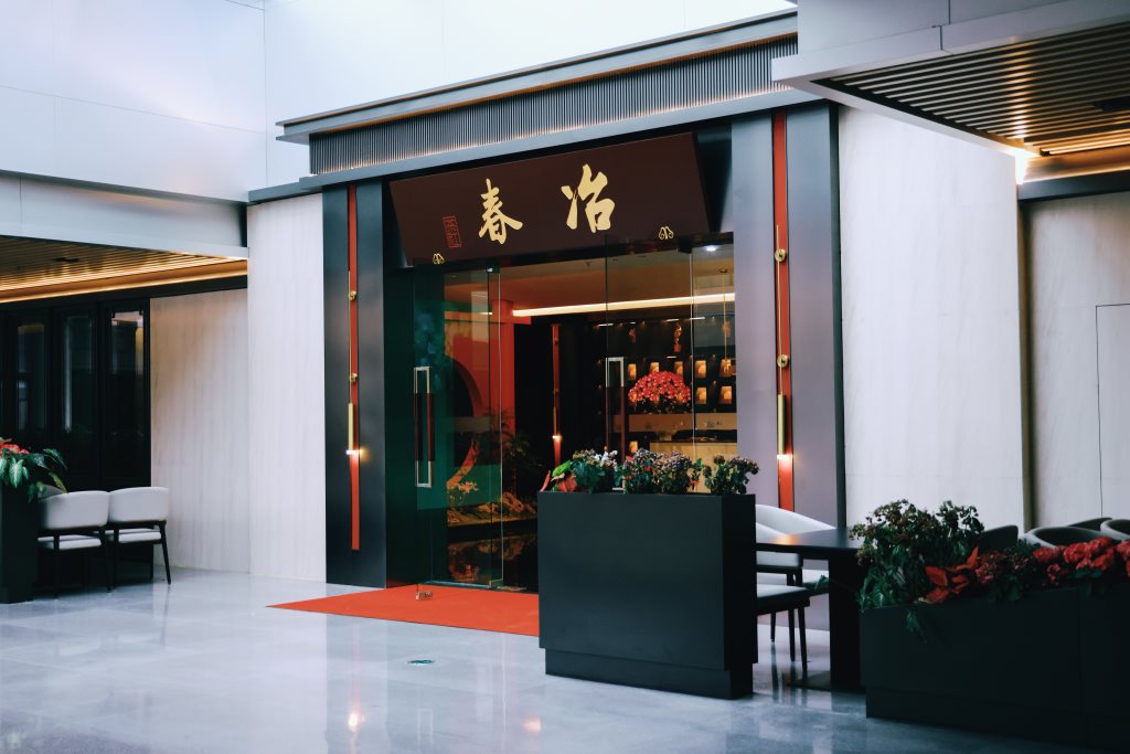 在冶春的空间转折处,加利弗设计团队设置了文化艺术装置,装置背景是从很有代表性的扬州红桥的色彩提取,冷静的色调中一抹红,如同冶春的品牌精神,不断给消费者惊喜。装置用透明的亚克力包裹石头和植物,寓意冶春的创新和源源不断的生命力及传承精神,它们不仅是空间的装饰,更是冶春品牌故事的现代讲述者。这些装置,如同历史的注脚,让每一位顾客在享受美食的同时,也能感受到扬州文化的深厚底蕴。