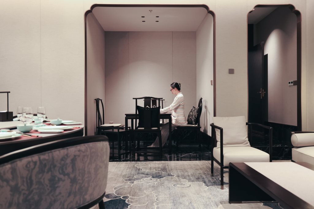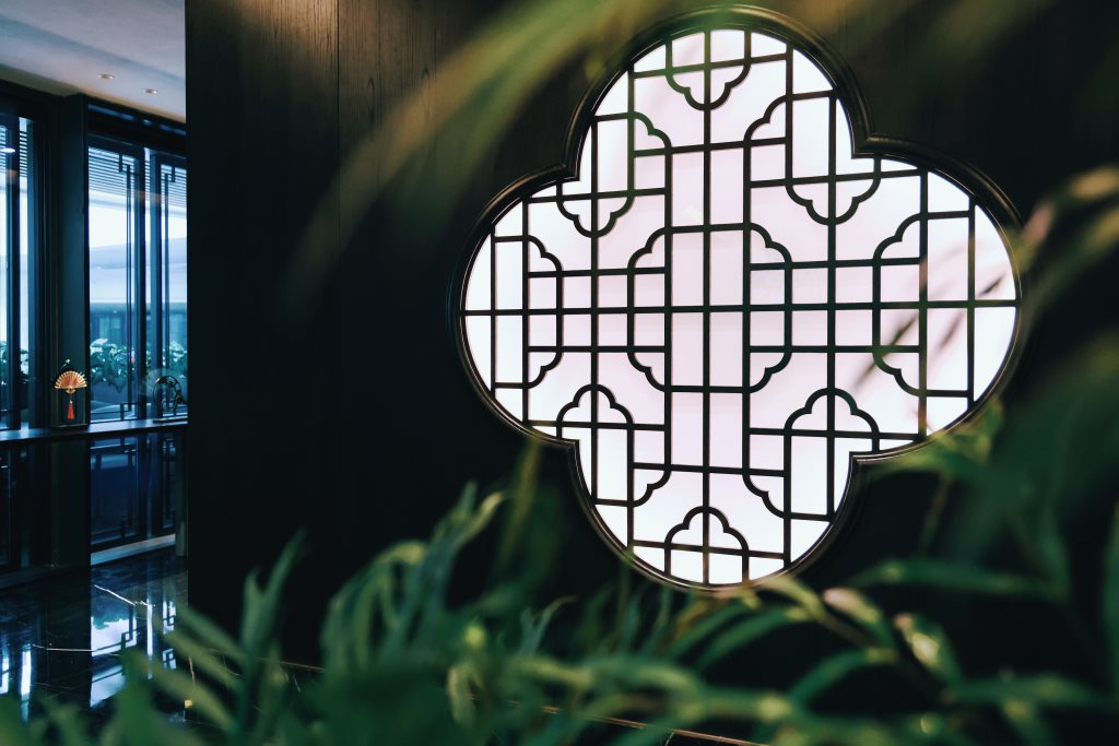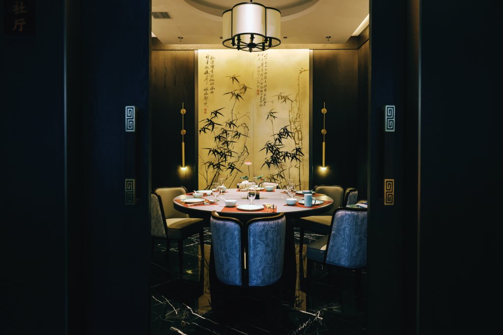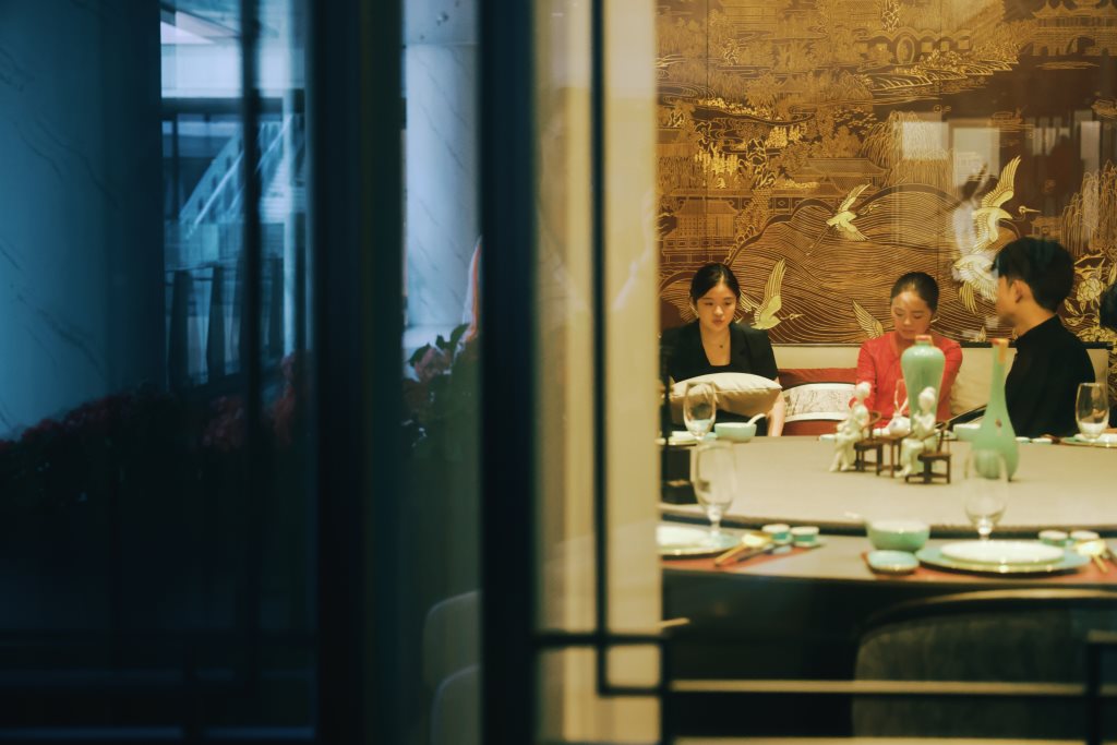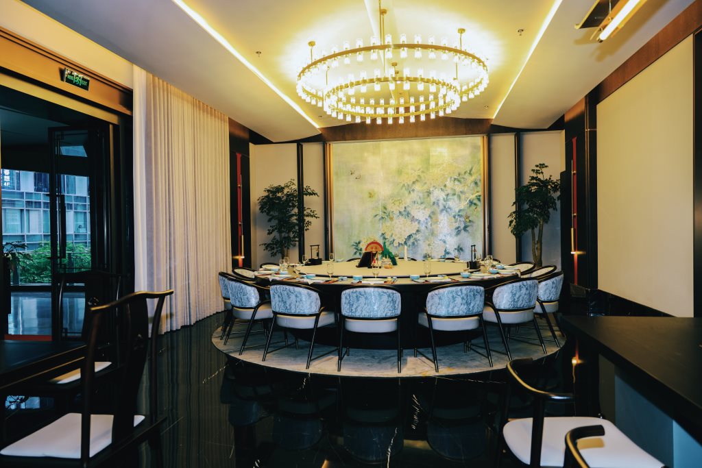 冶春深圳店的空间布局从江南建筑园林吸取灵感,将“步移景异”的理念穿插于空间,巧妙将水、亭、廊、间、树、石等园林元素及古建筑的斜顶、窗户雕花融入空间中,形成开放性和隐私性协同的空间布局形式。室外与室内交融,现代与古典相映,每一处转角,都可能是一次新的发现。加利弗设计团队巧妙地运用空间的多面性与延展性,打造出既适合宴请宾客,又适合亲朋小聚的多功能场所。